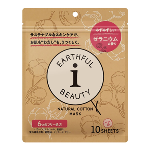 環境に優しく肌あたりも優しい100%ピュアコットンの無漂白シートを使用しています。廃棄予定の山形県産のナメコを再利用し、ヒアルロン酸の約6倍の保水力を持つと言われる保湿成分「フォリテクト」や高い抗酸化作用があると言われる「リンゴ幹細胞」を配合。さらにオーガニック認証を受けた8種ものオーガニック成分を配合しています。お使いのシーンでは華やかなゼラニウムの香りがスキンケアタイムをリラックスタイムに変えてくれます。パラベン・アルコール・着色料・紫外線吸収剤・鉱物油・シリコーンと6つのフリー処方で安心してお使いいただけます。手軽に使える10枚入りタイプです。